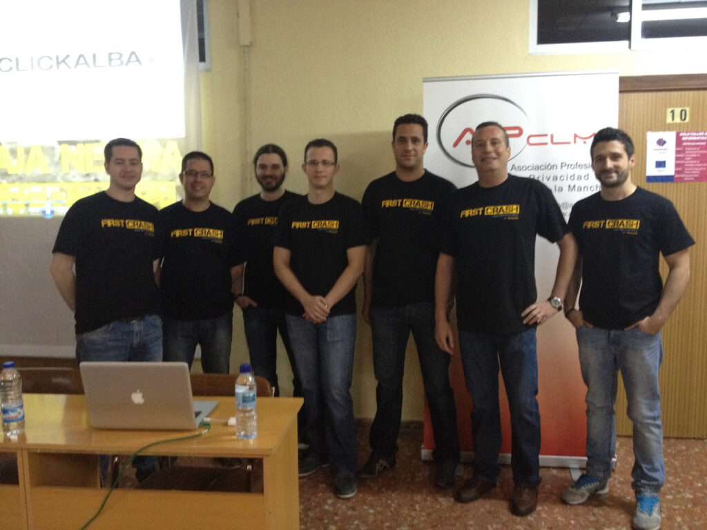 Celebrado el 26 de mayo de 2012, la primera reunión de Navaja Negra, denominada Fisrt Crash, fue un experimento para ver la viabilidad del evento y coger experiencia para celebrar más adelante un congreso. Esta primera edición, que no fue publicitada y sólo se podía acceder mediante invitación de la organización, reunió a unas 50 personas en el local de la academia Madesyp.